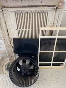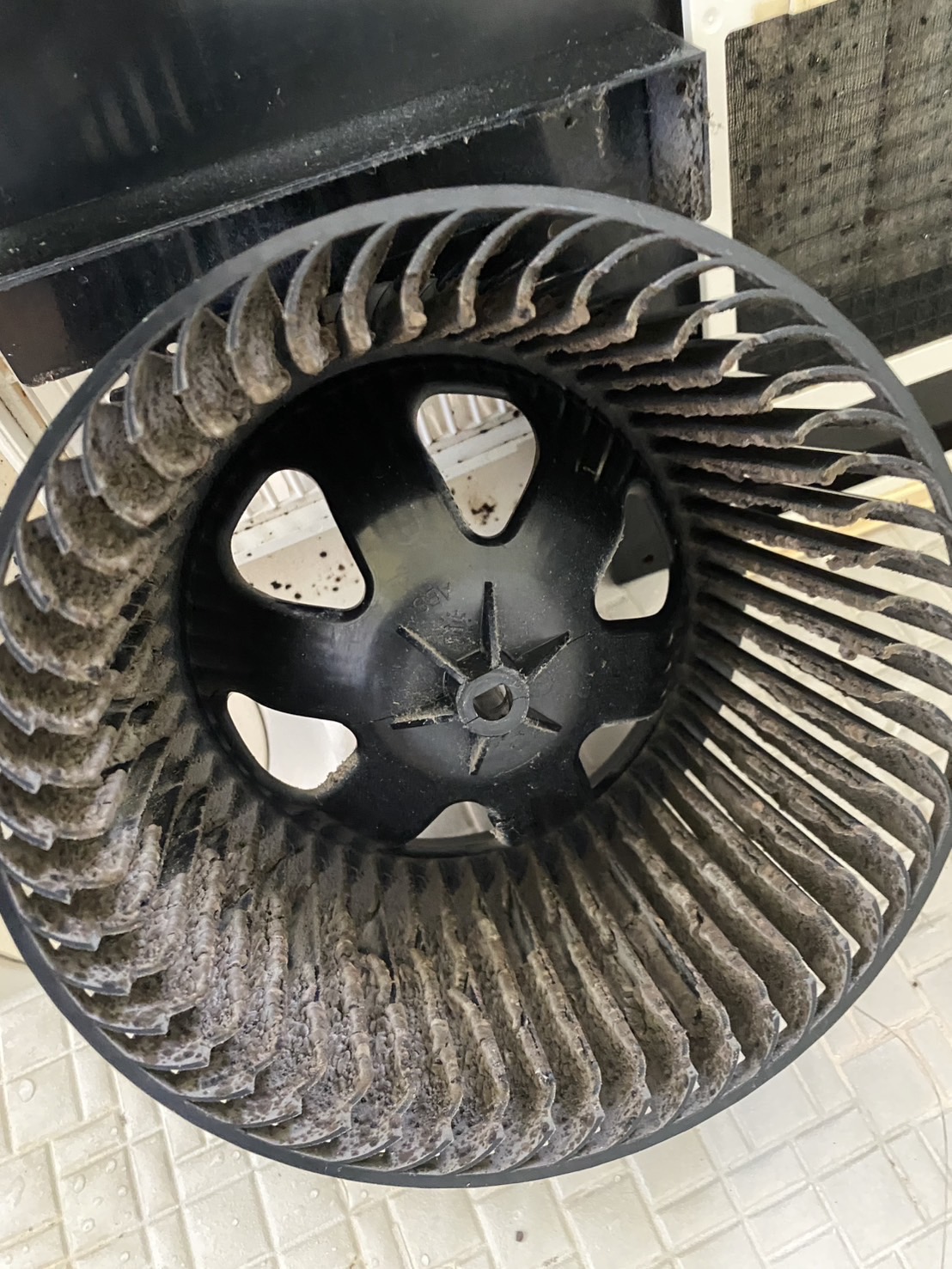 15年もののカビ汚れで、ファンの羽根の形状が変わり換気不良となってます。