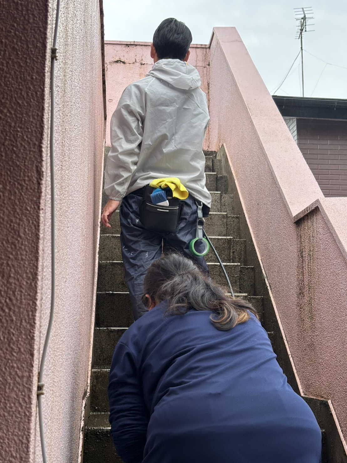 管理マンション様 階段部分のコケ取り 高圧洗浄機サービス