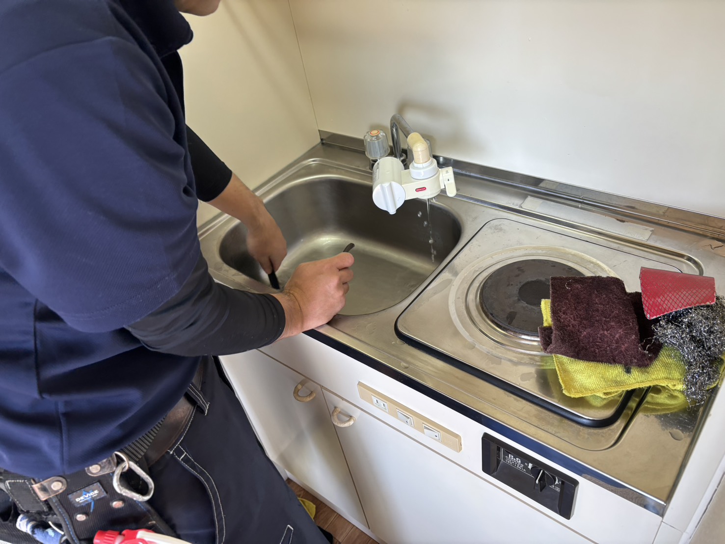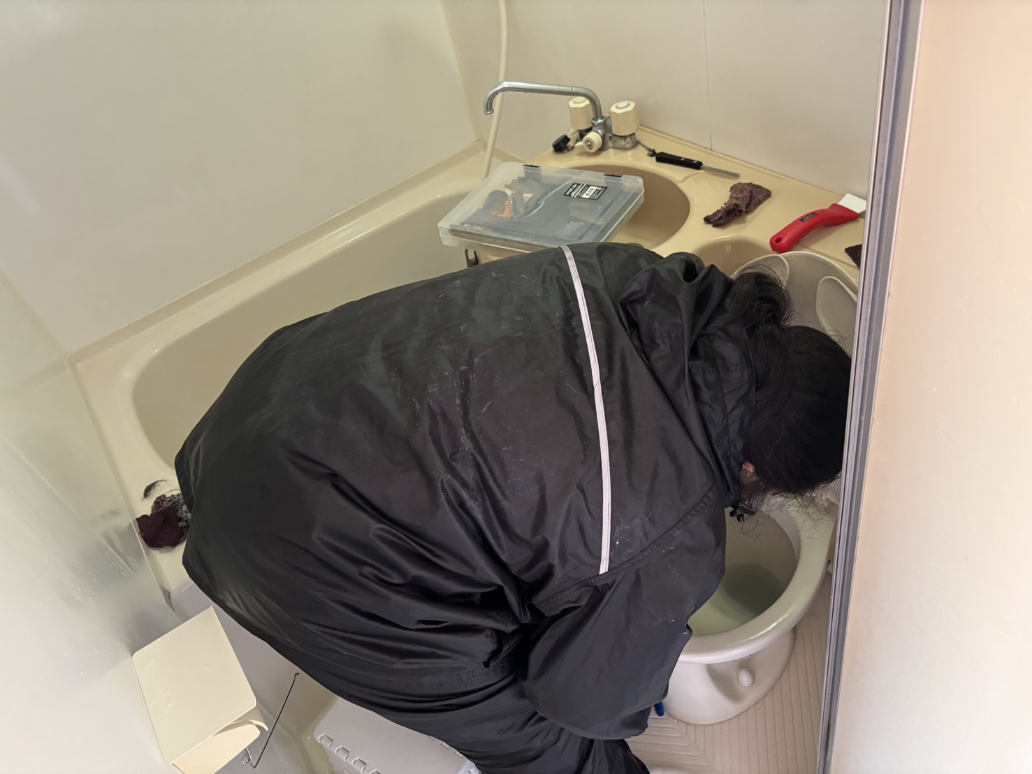 今日はスタッフと、マンション1k空室丸ごとクリーニングにきております!